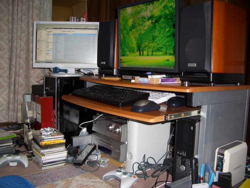 左からCentOSを入れたAtom機、オンライン用XBOX360、